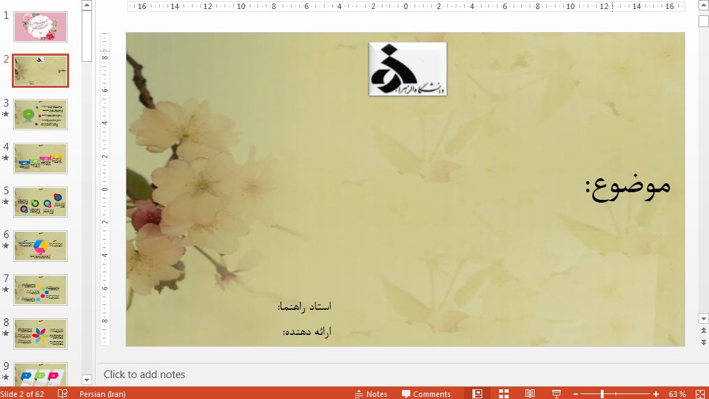 جدیدترین قالب پاورپوینت حرفه ای دانشگاه الزهرا